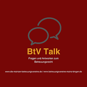 BTV Talk ist ein neues Online-Angebot für Ehrenamtliche, die Fragen rund um das Betreuungsrecht haben. Mitarbeitende der Betreuungsvereine der Stadt Mainz und des Landkreises Mainz-Bingen stehen Ihnen im Gespräch zur Verfügung. Sie haben eine ehrenamtliche Betreuung oder Vollmacht übernommen und stoßen in der Ausübung zeitweise an Ihre persönlichen und fachlichen Grenzen? Im BTV Talk können Sie Fragen aus Ihrem Betreuungsalltag stellen, Lösungsvorschläge mit anderen Ehrenamtlichen diskutieren und Tipps von erfahrenen Betreuer*innen erhalten.